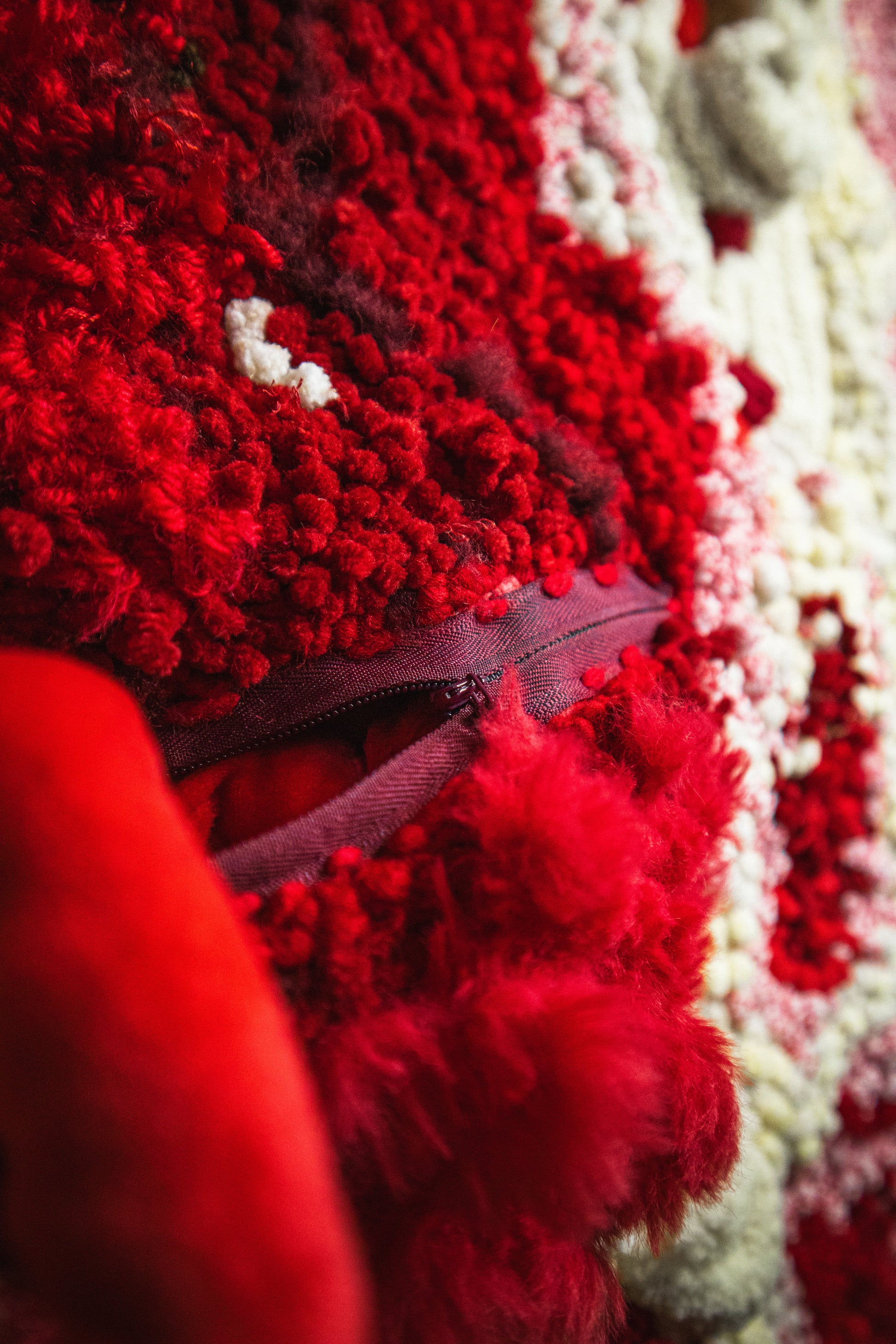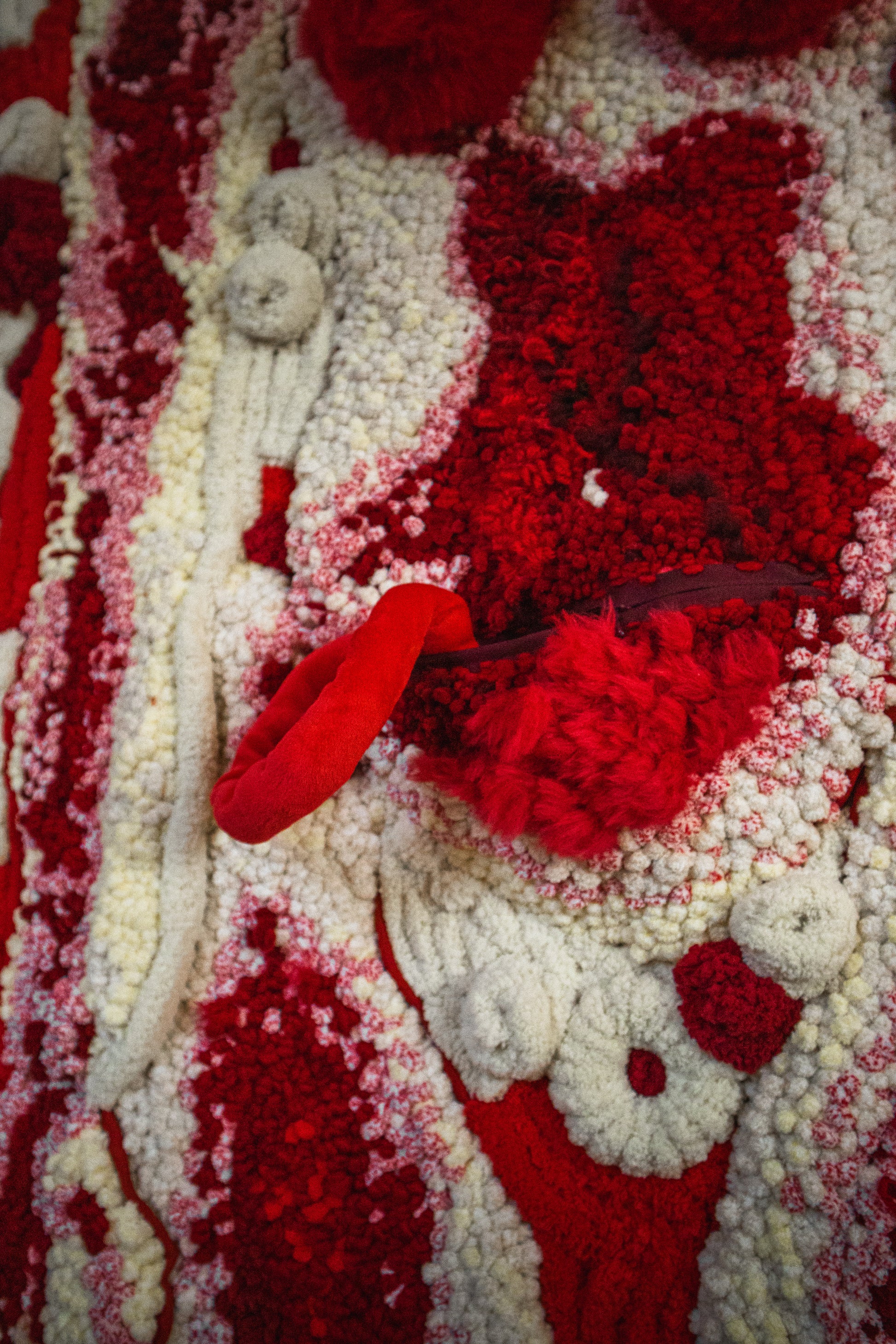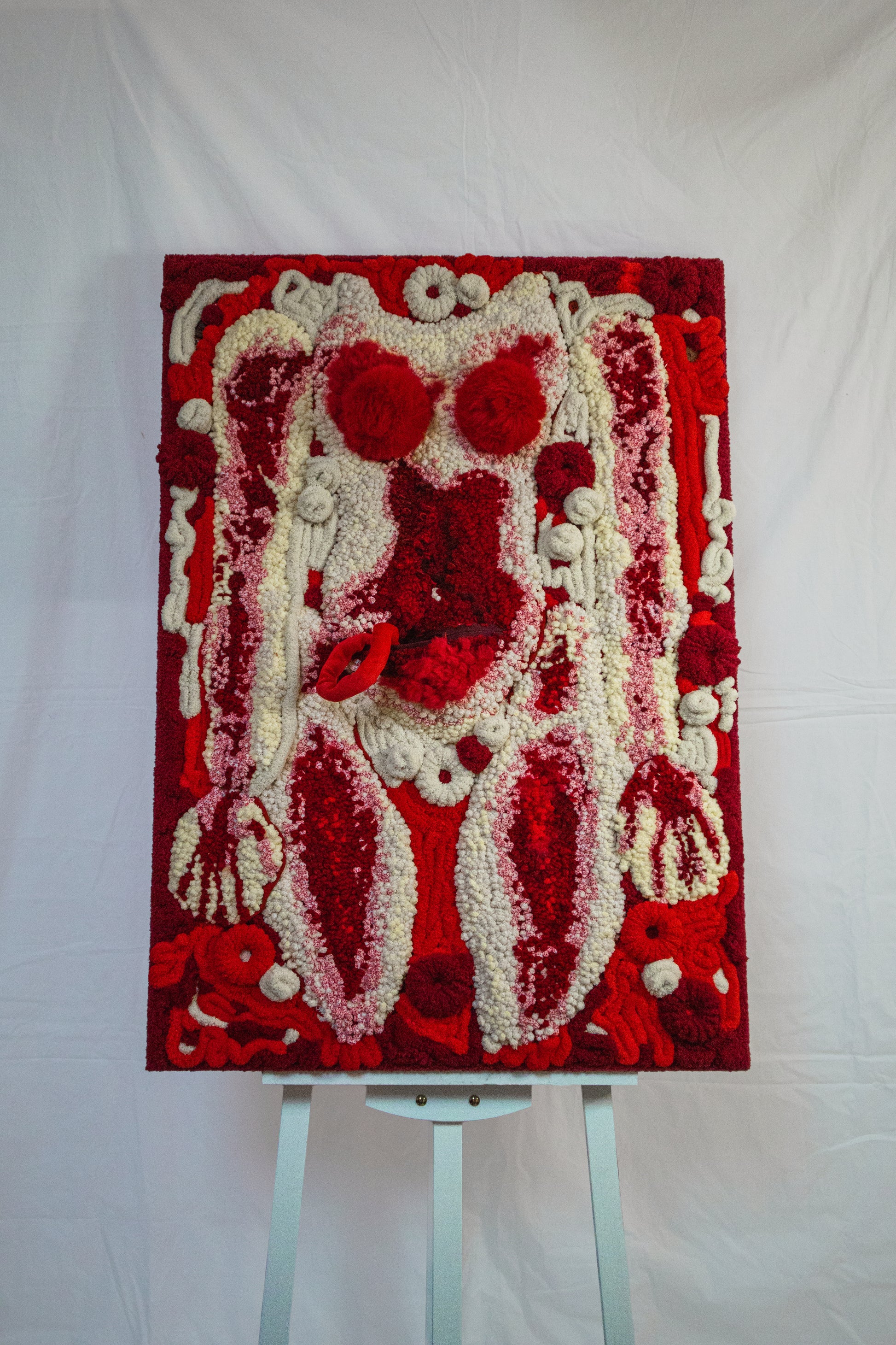 Having gone through several iterations, this artwork is a tufted body print of the artist, created to immortalise her figure in a pursuit to alleviate existential thoughts. The 'zip-able' intestines are inspired by her fears of C-sections and birth.